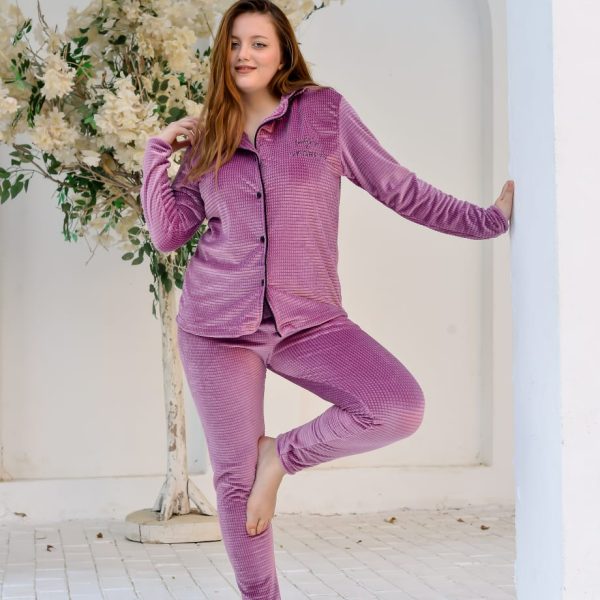 تعتبر هذه البيجامة إضافة مثالية لمجموعة ملابس النوم الخاصة بكِ، حيث إنها مصنوعة من نسيج مخملي فائق النعومة والفخامة، وتوفر مستوى عالياً من الراحة والدفء، الأمر الذي يجعلها مناسبة تماماً للاستخدام في الليالي الباردة. وبالإضافة إلى ذلك، فهي توفر تشكيلة من الألوان التي تتناسب مع تفضيلاتكِ في مختلف الأوقات لإضفاء لمسة من الأناقة، في حين أن تنوع المقاسات المتوفرة يضمن ملاءمة مثالية لكِ.